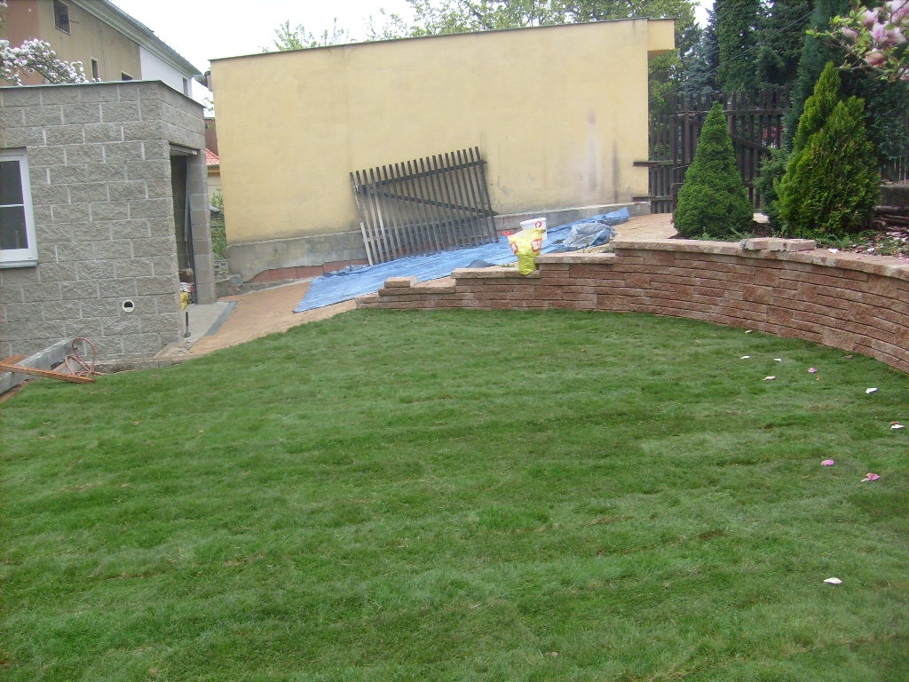 Chabařovice - altán s kuchyní, kobercový trávník
