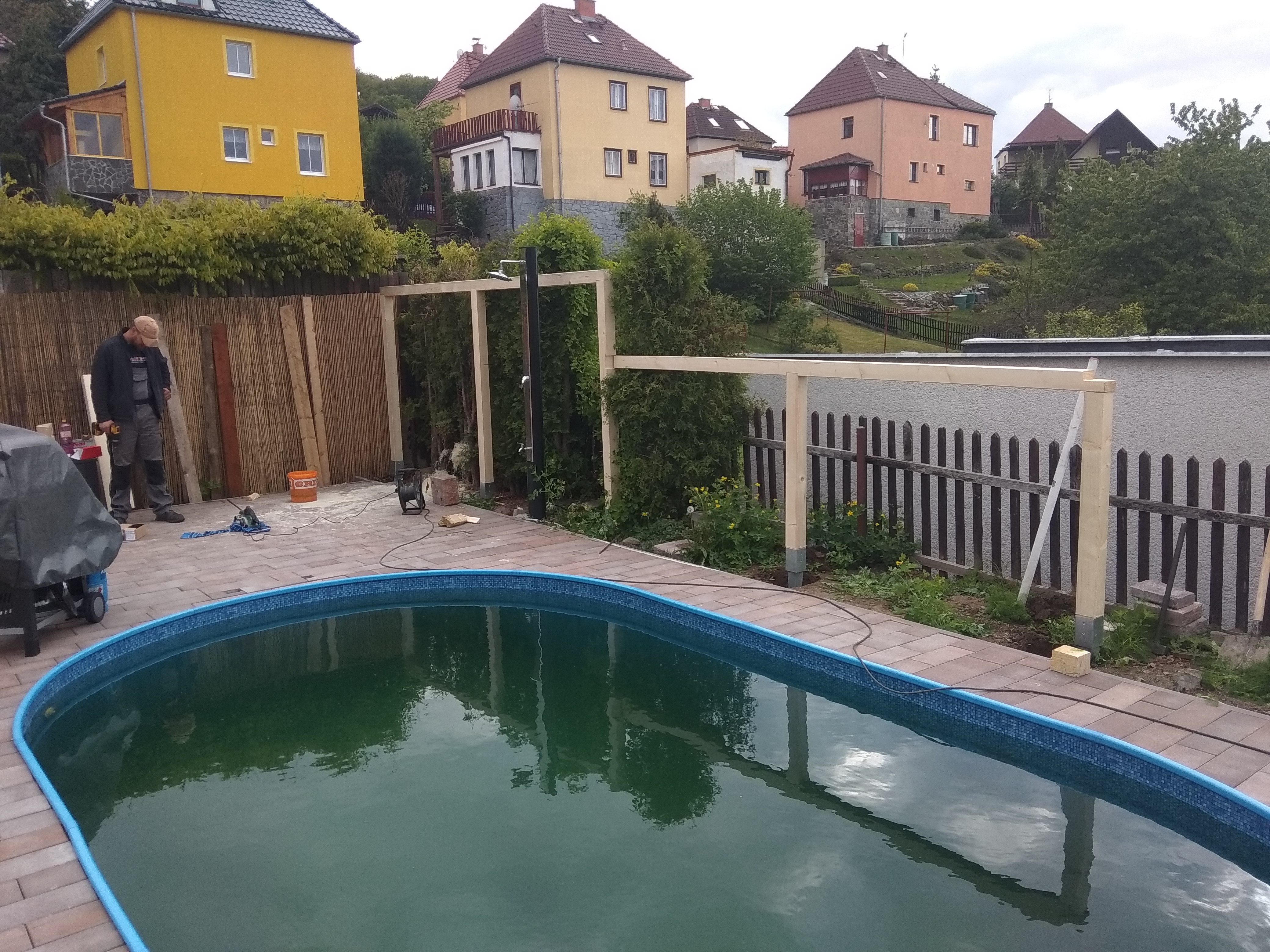 Chabařovice - altán s kuchyní, kobercový trávník