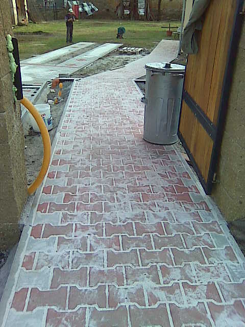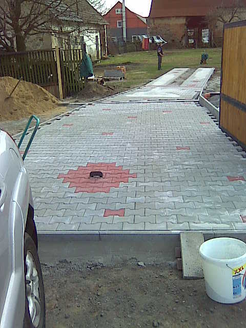 Jednalo se o stavbu příjezdové cesty a chodníku k rodinnému domu. Byl zvolen typ dlažby cihla 20x10/8cm v kombinaci s červenou zámkovou dlažbou téhož druhu.Investor potřeboval vyřešit příjezdovou cestu k domu, zejména proto, že při silných děštích se na celé ploše tvořily kaluže a po vjezdu auta zde byla souvislá vrstva bahna.