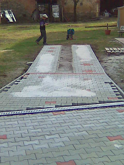 Průběh prací byl zjednodušen o odtěžení materiálu, protože celá plocha byla nižší než nově budovaná plocha. Začalo se betonováním obrubníků a následným navozením štěrkového lože, které se po vrstvách uhutnilo. Když to bylo připravené, mohlo se začít s pokládkou zámkové dlažby. To už byla rychlovka a celá akce nám nezabrala více než týden.