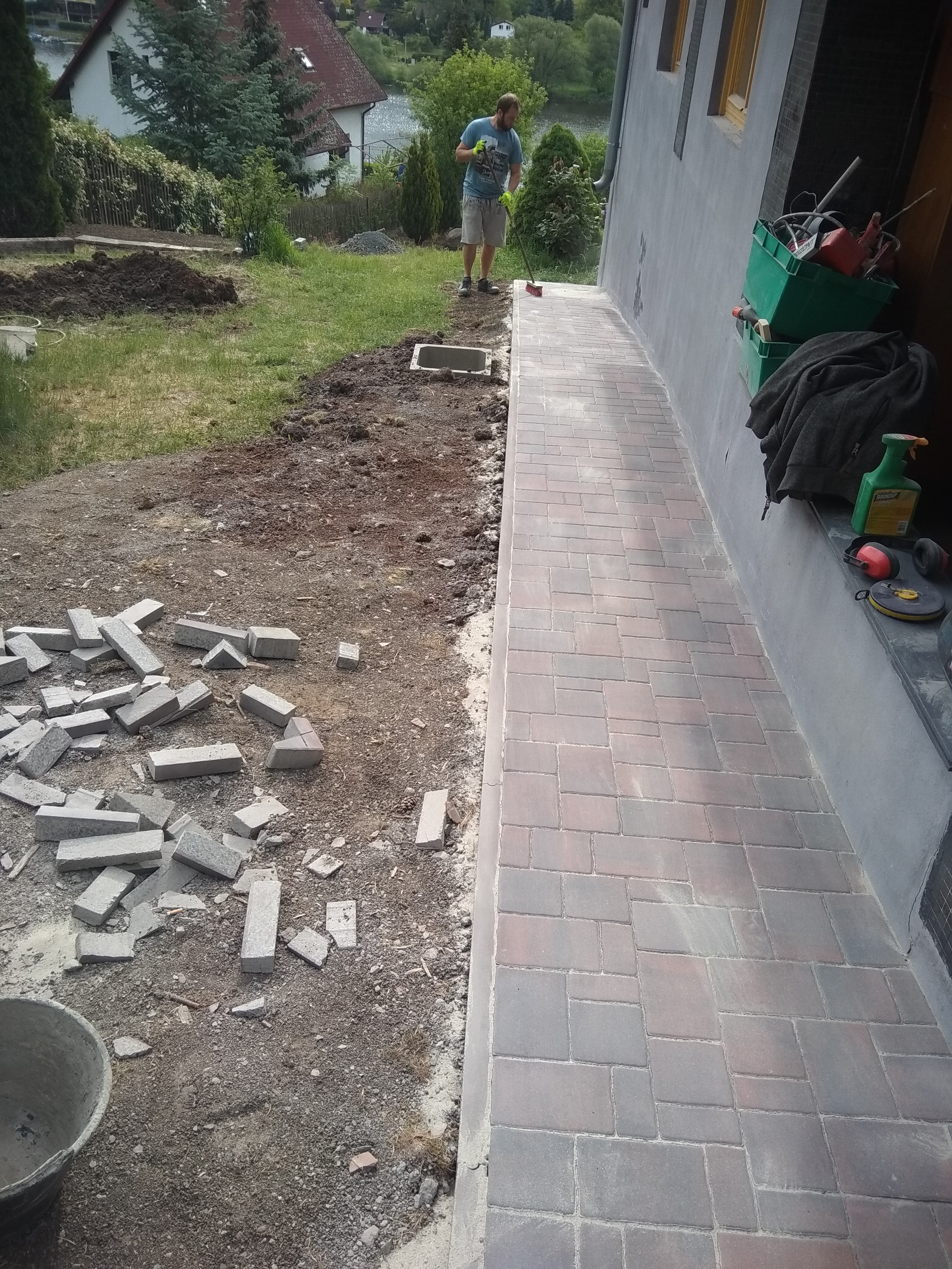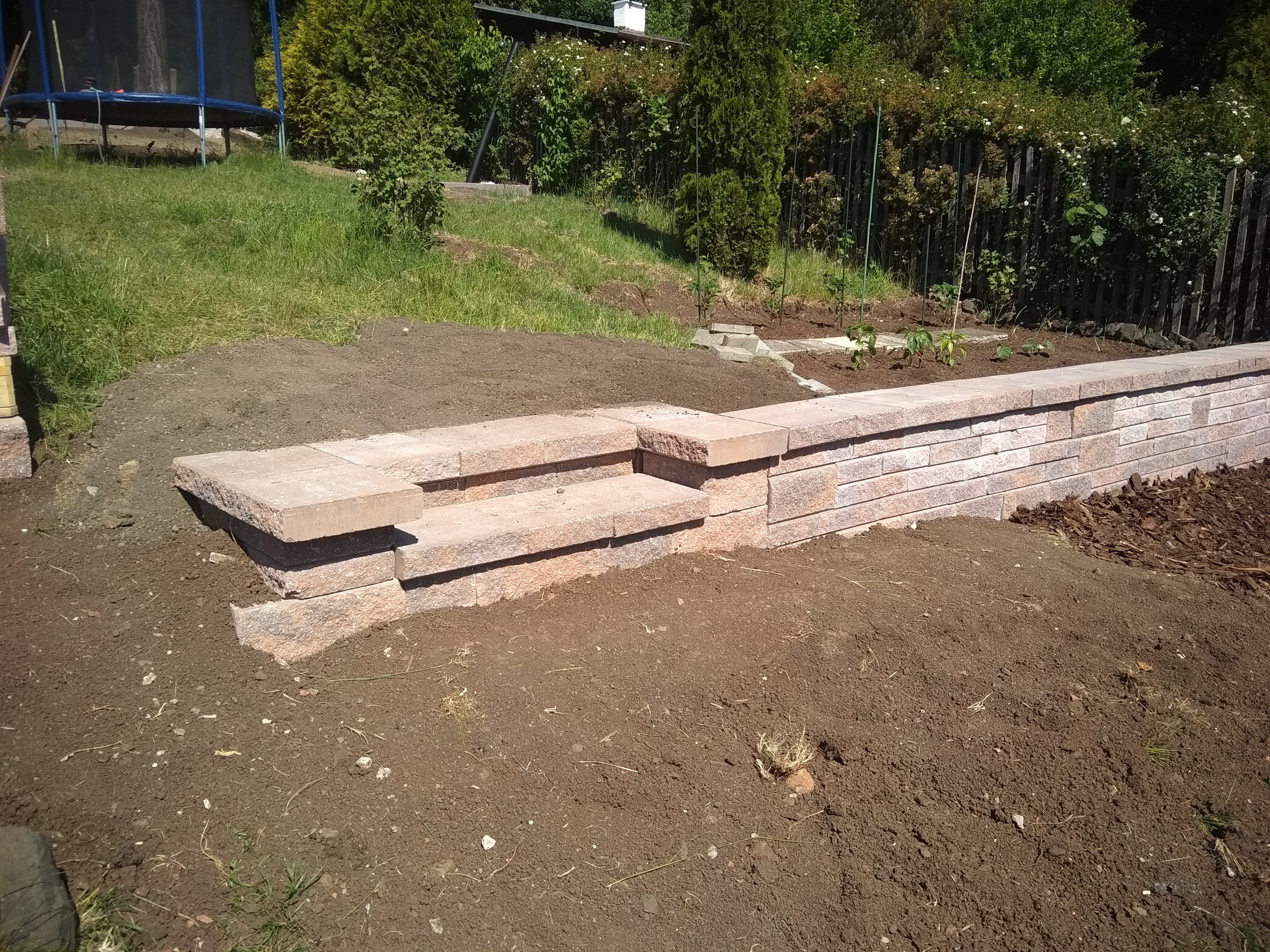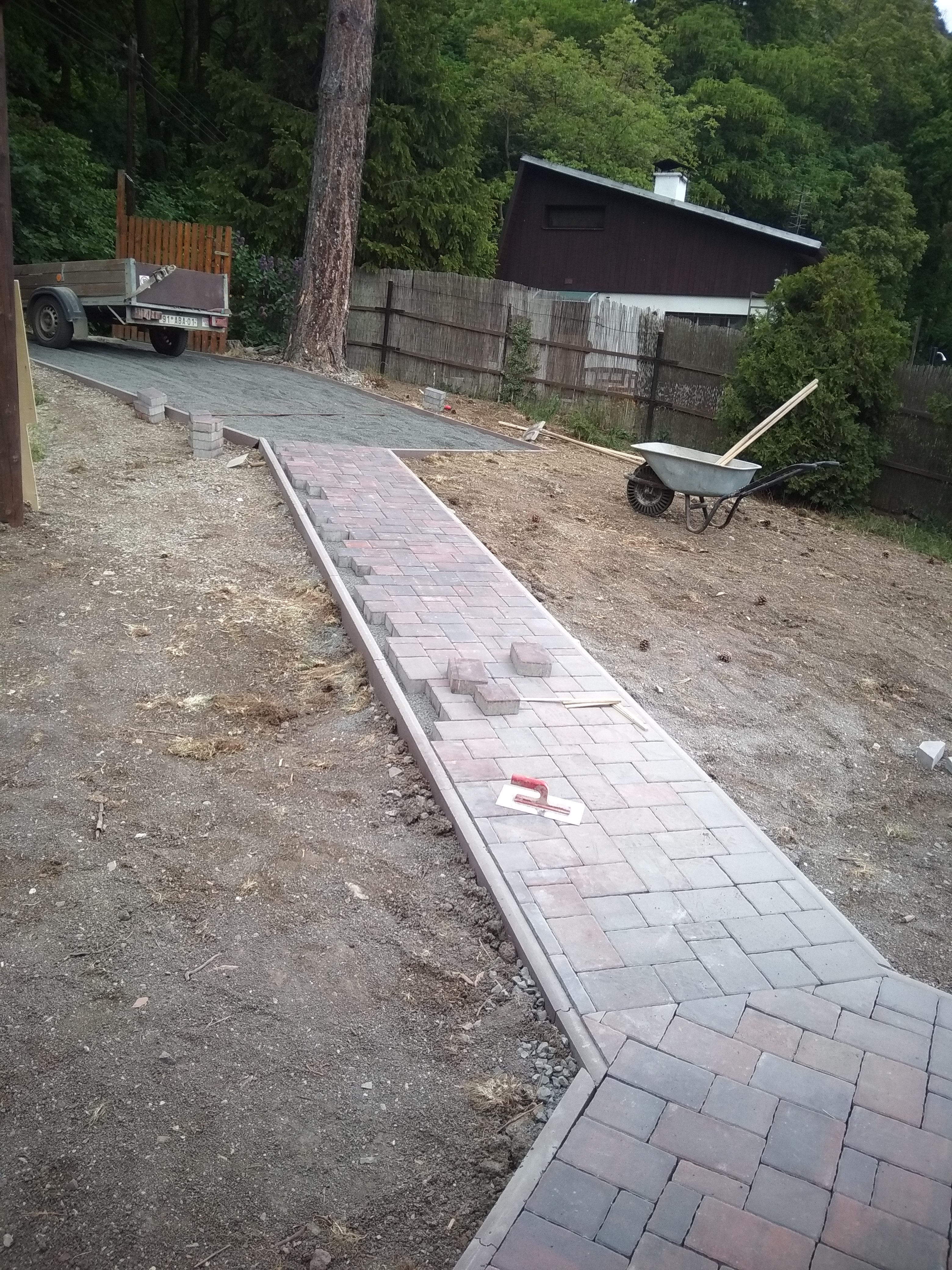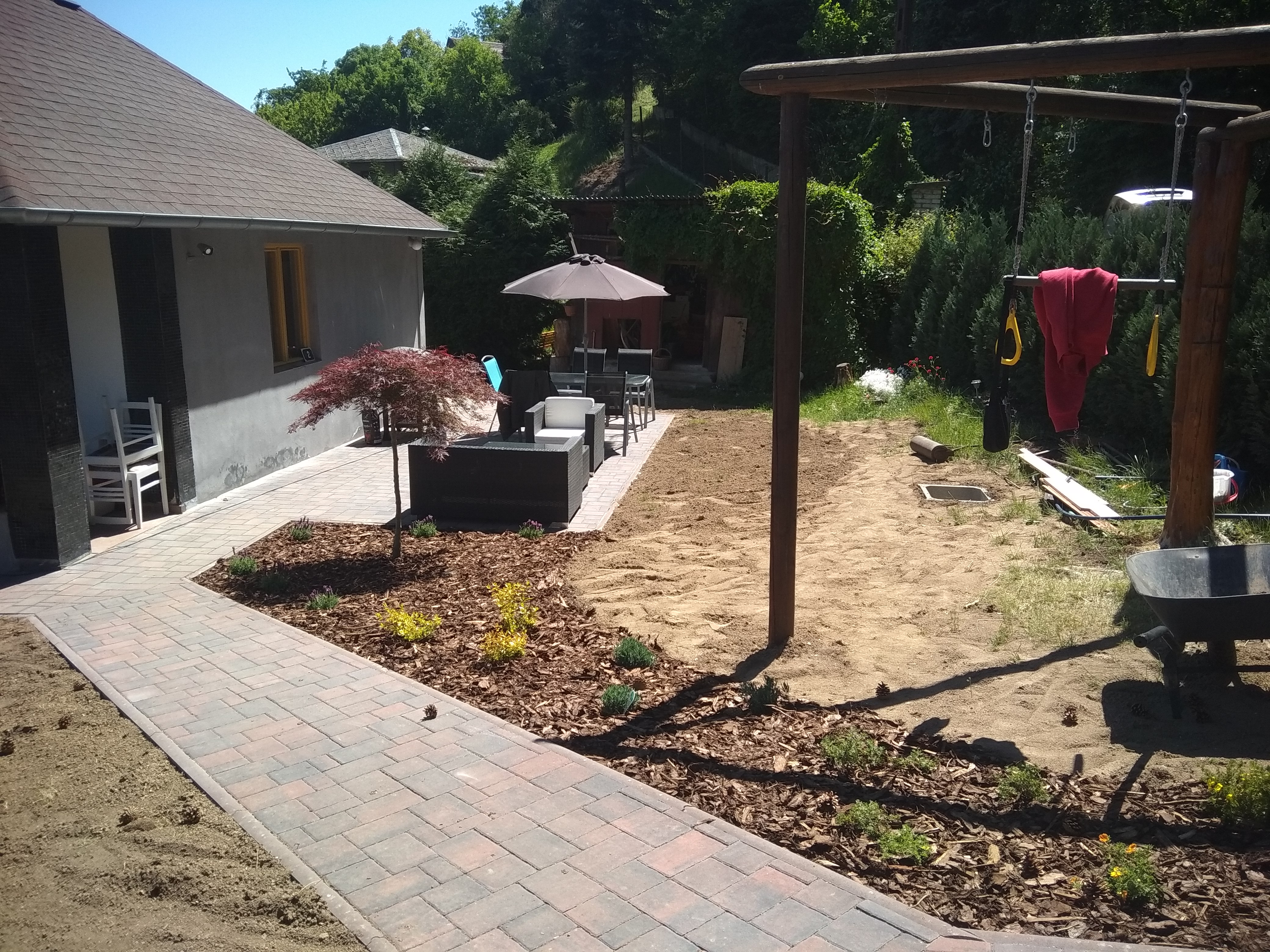 - Rozsah prací: Výsadby, dlažby, opěrné zdí, stání pro auto, rozvody vody