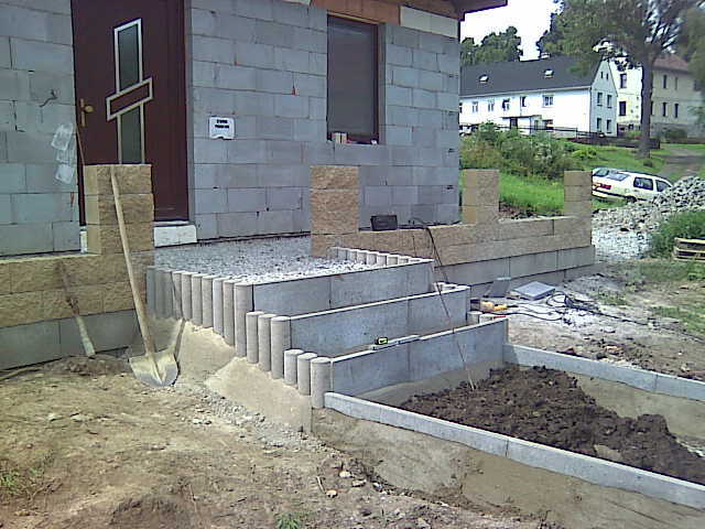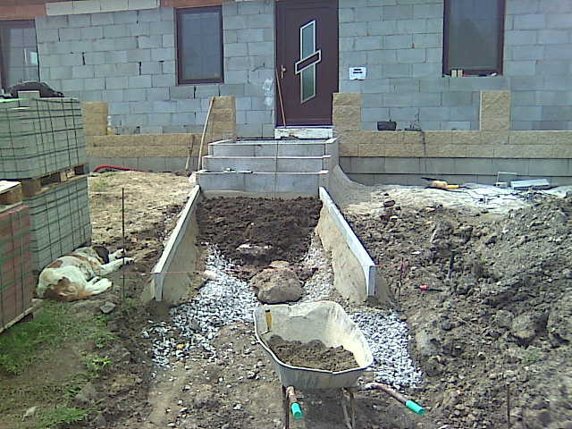 K novému rodinnému domu se musela vybudovat přístupová cesta, schodiště k domu a malý plůtek.