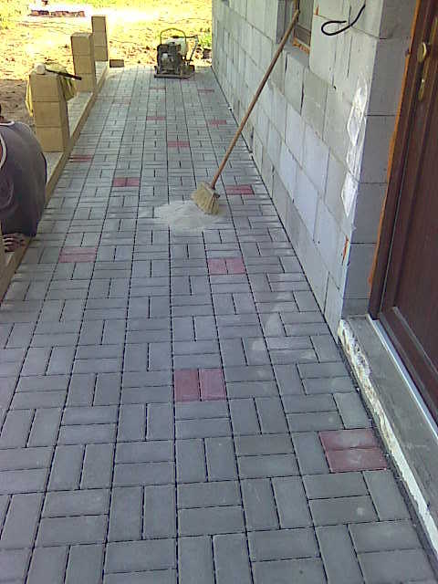Po převzetí zakázky, jsme si celou plochu vyměřili a začali s výkopovými pracemi. Pak jsme začali s betonáží základového pasu oplocení. Když už byl beton na místě, pustili se kluci i do zabetonování zahradních obrubníků. Jakmile beton vytvrdl, začali jsme na betonový základ stavět oplocení z betonových prefabrikátů. Plot byl v celé délce proarmovaný a zalitý betonem. Následně se nalepily stříšky a jedna část byla hotová. Začali jsme se soustředit na zámkovou dlažbu, do celé plochy se navozil štěrk, který se uhutnil a už zbývalo jen položit zámkovou dlažbu. Kompletní realizaci od převzetí po předání jsme zvládli za čtrnáct dní.