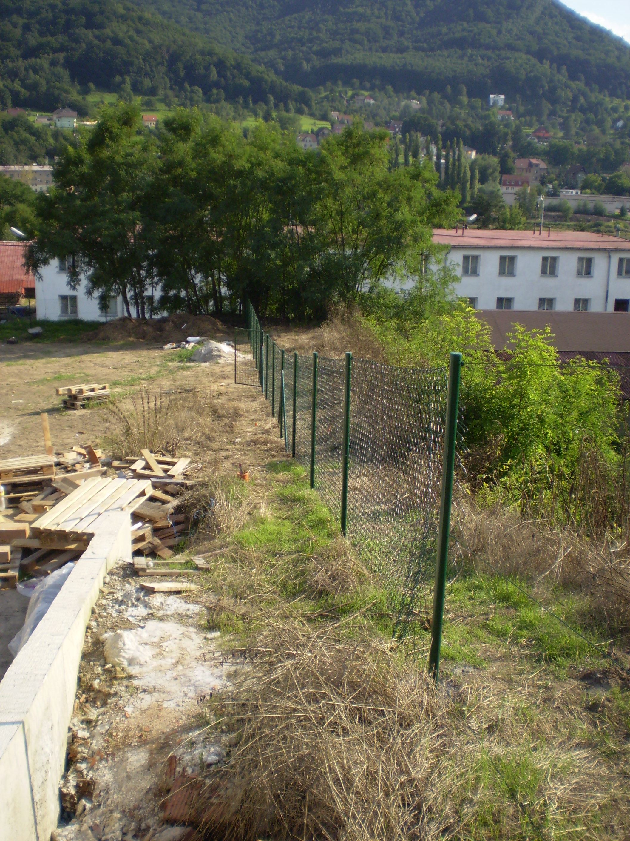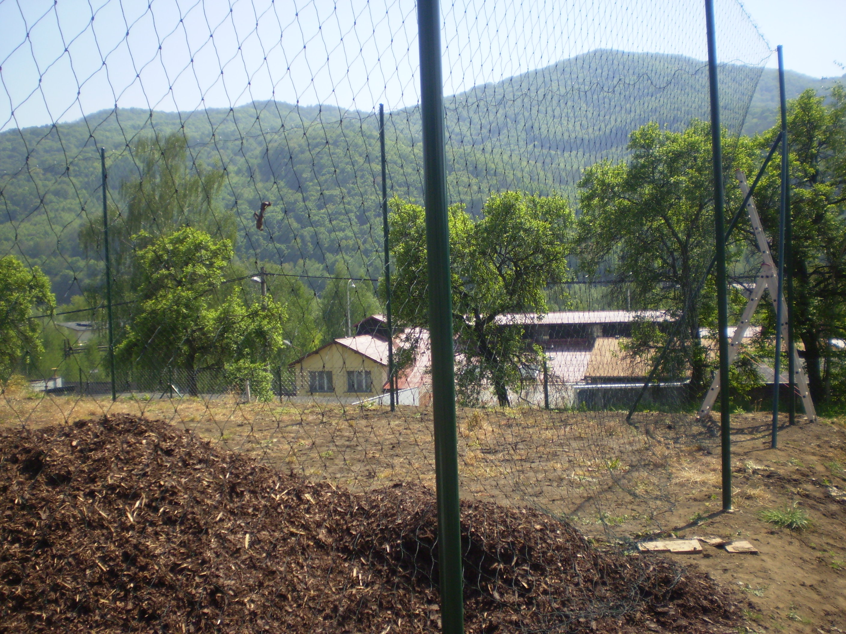Rozsah prací: Oplocení pozemku 170m, oplocení hřiště 60m, stavba kotce ze svařovaných pozinkovaných sítí 30m