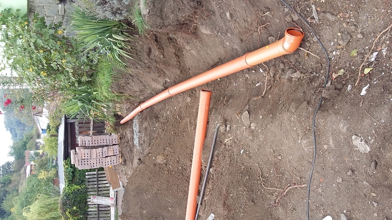 Nejprve bylo zapotřebí celou zahradu vyčistit a upravit terén dle nového projektu. Po hrubých úpravách následovalo uložit do výkopu rozvody vody, elektřiny, trativodů a okapových svodů. Hlavním zásahem do zahrady bylo vytvoření nového vstupu do domu a bazén s altánem.