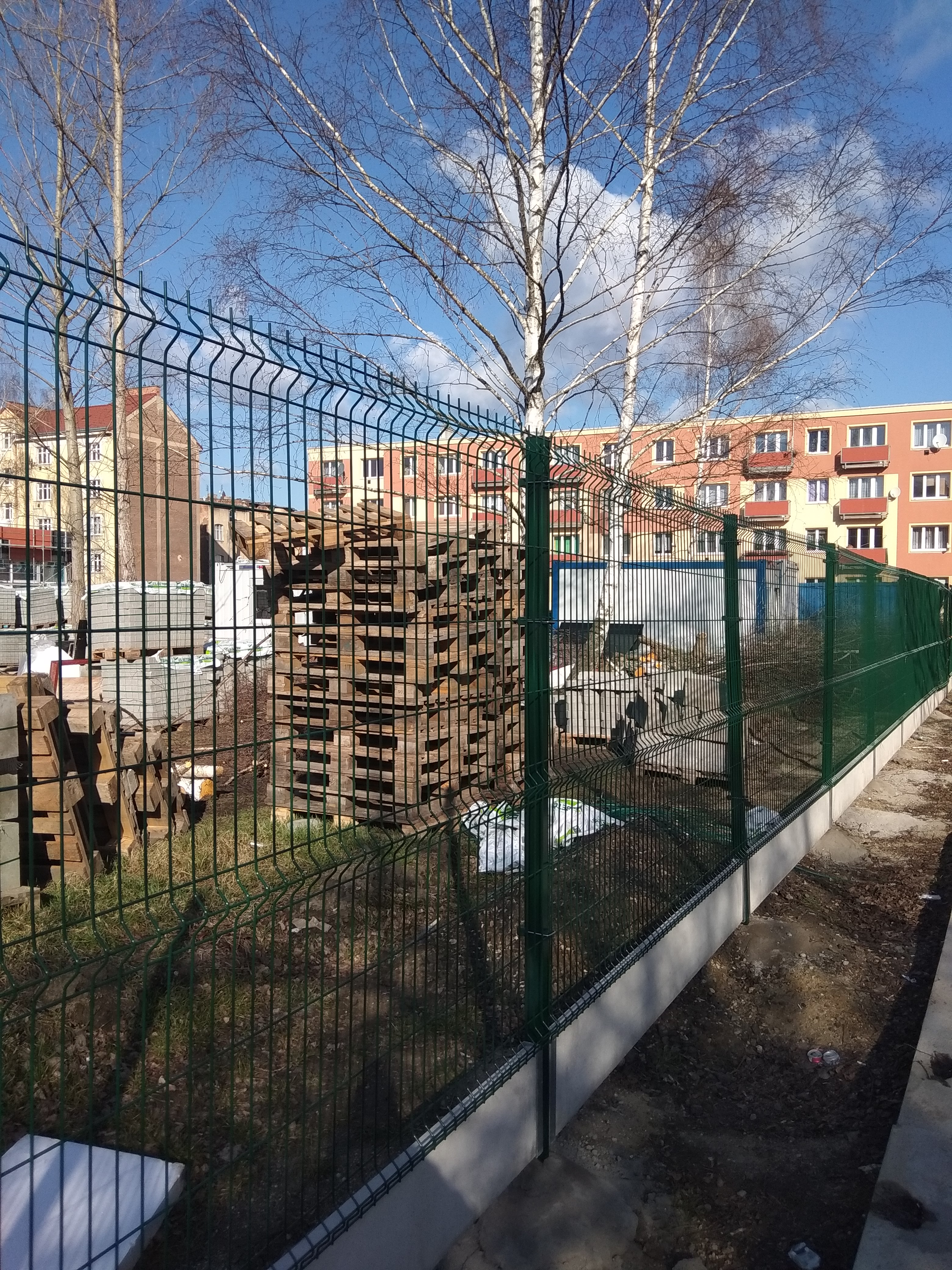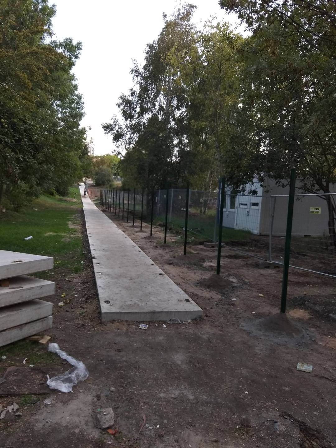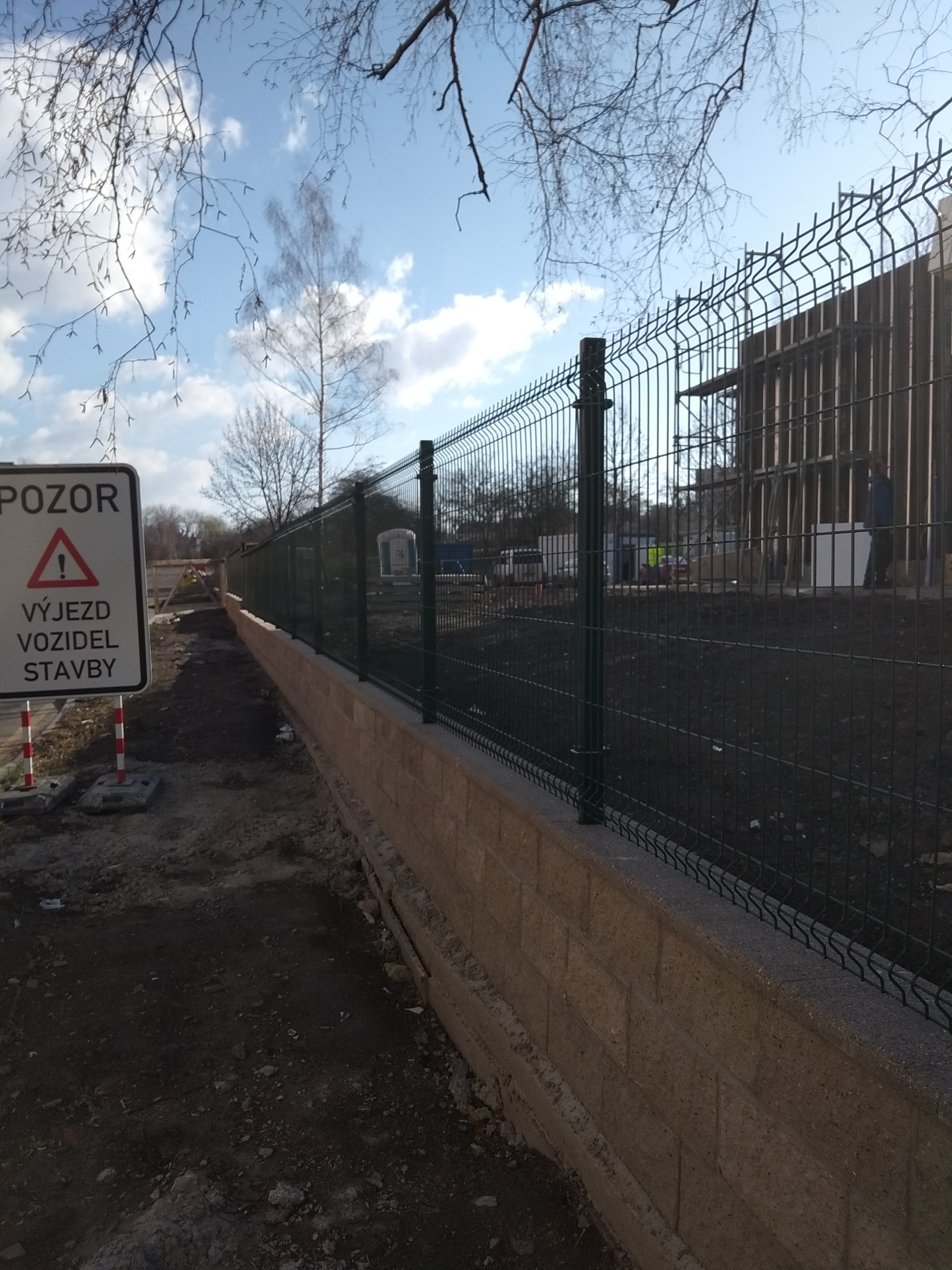 V přední části byly vystavěny tři řady betonových tvárnic. Před zalitím zdi byly do zdi instalovány sloupky. Když beton vytvrdl, nainstalovali jsme sítě a dílo bylo hotové.