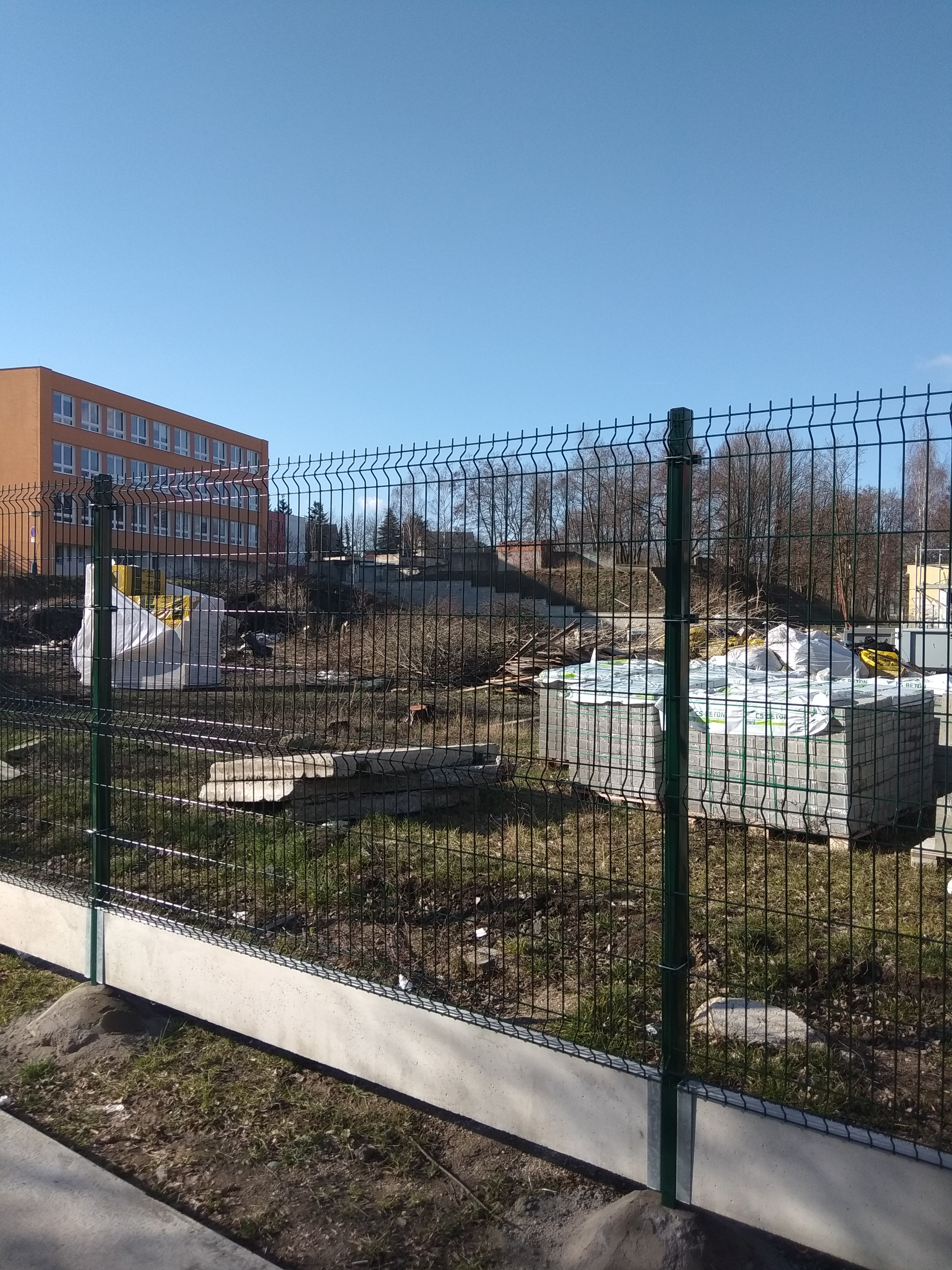Dostali jsme poptávku na nově vznikající sportoviště u V SŠS v Teplicích. Dle projektové dokumentace bylo požadované 2m oplocení s podhrabovou deskou. V přední příjezdové části je oplocení s podezdívkou z betonových tvárnic.