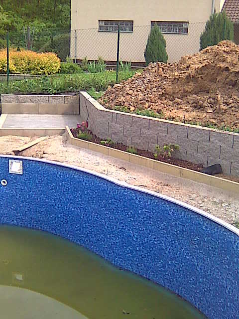 U nově postaveného rodinného domu, se musela vybudovat příjezdová cesta do garáží. Dále se na zahradě v okolí nového bazénu měla postavit opěrná zídka, schodiště a chodník k bazénu.