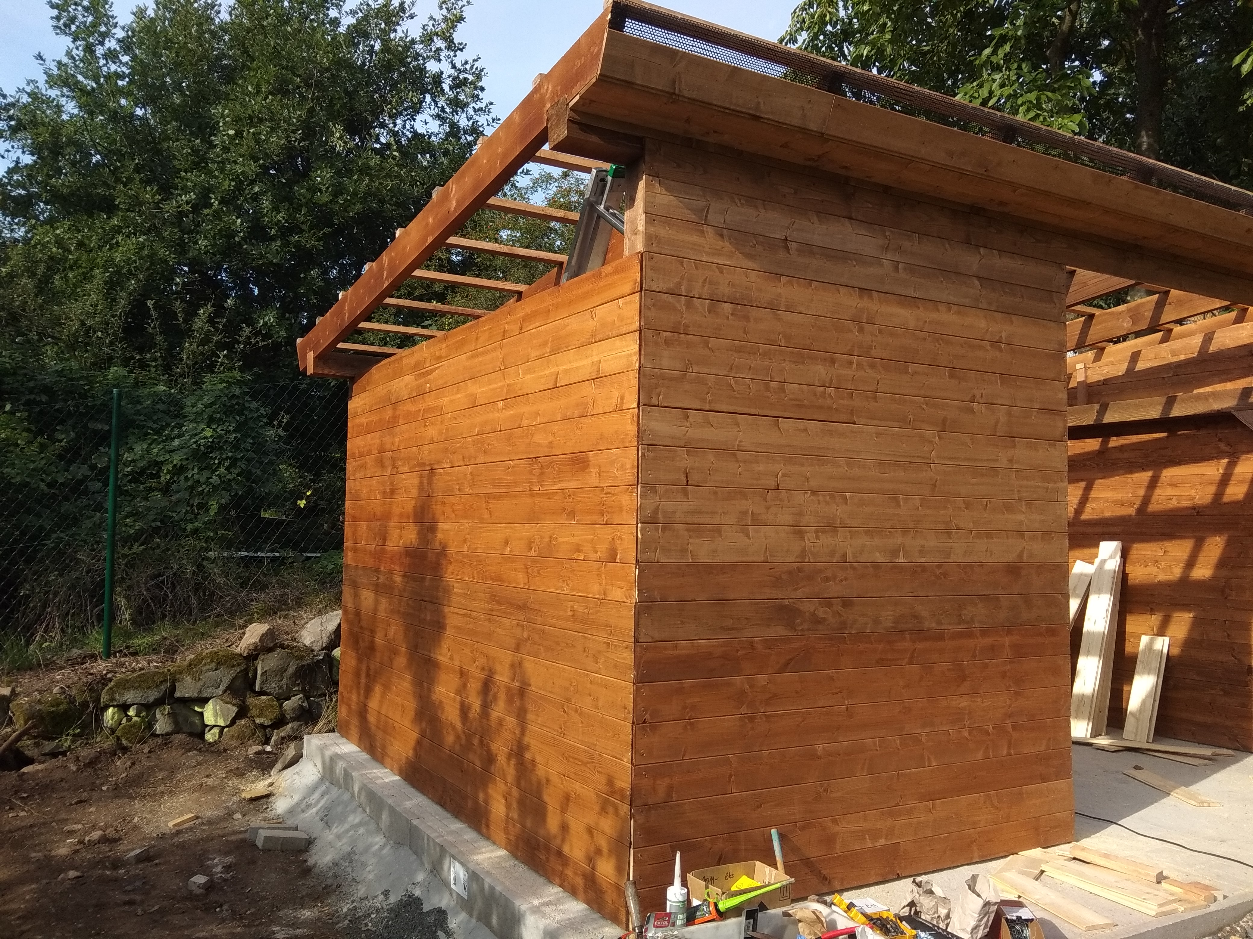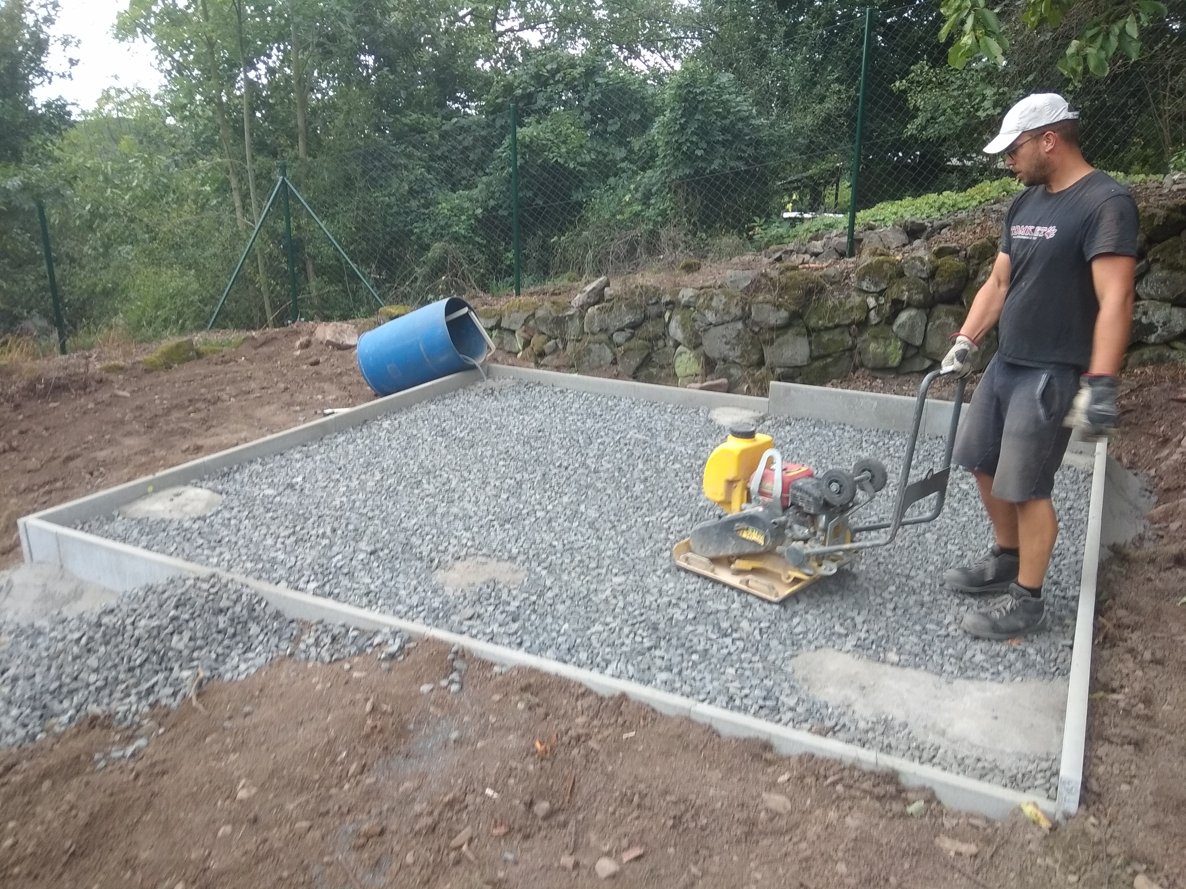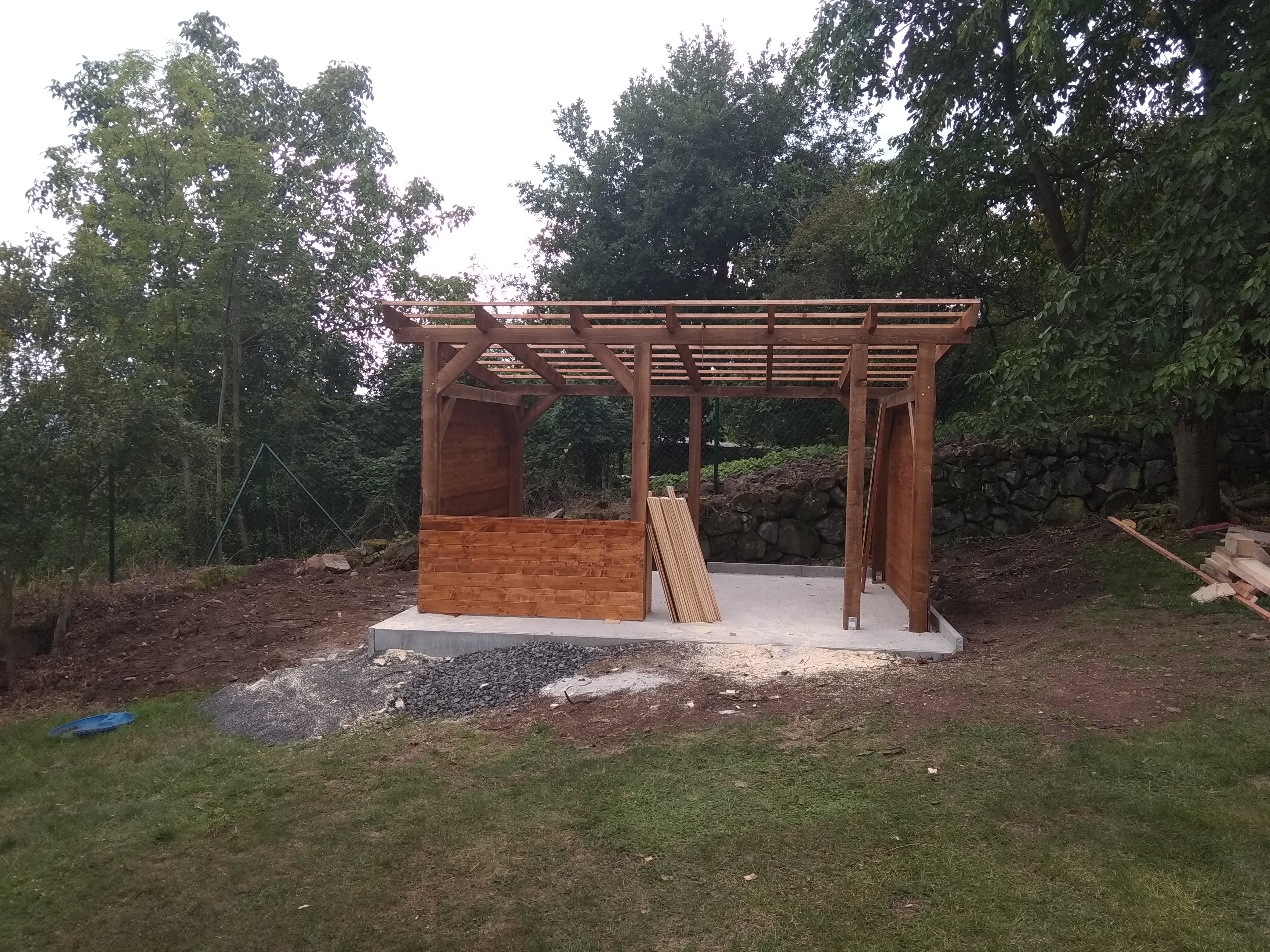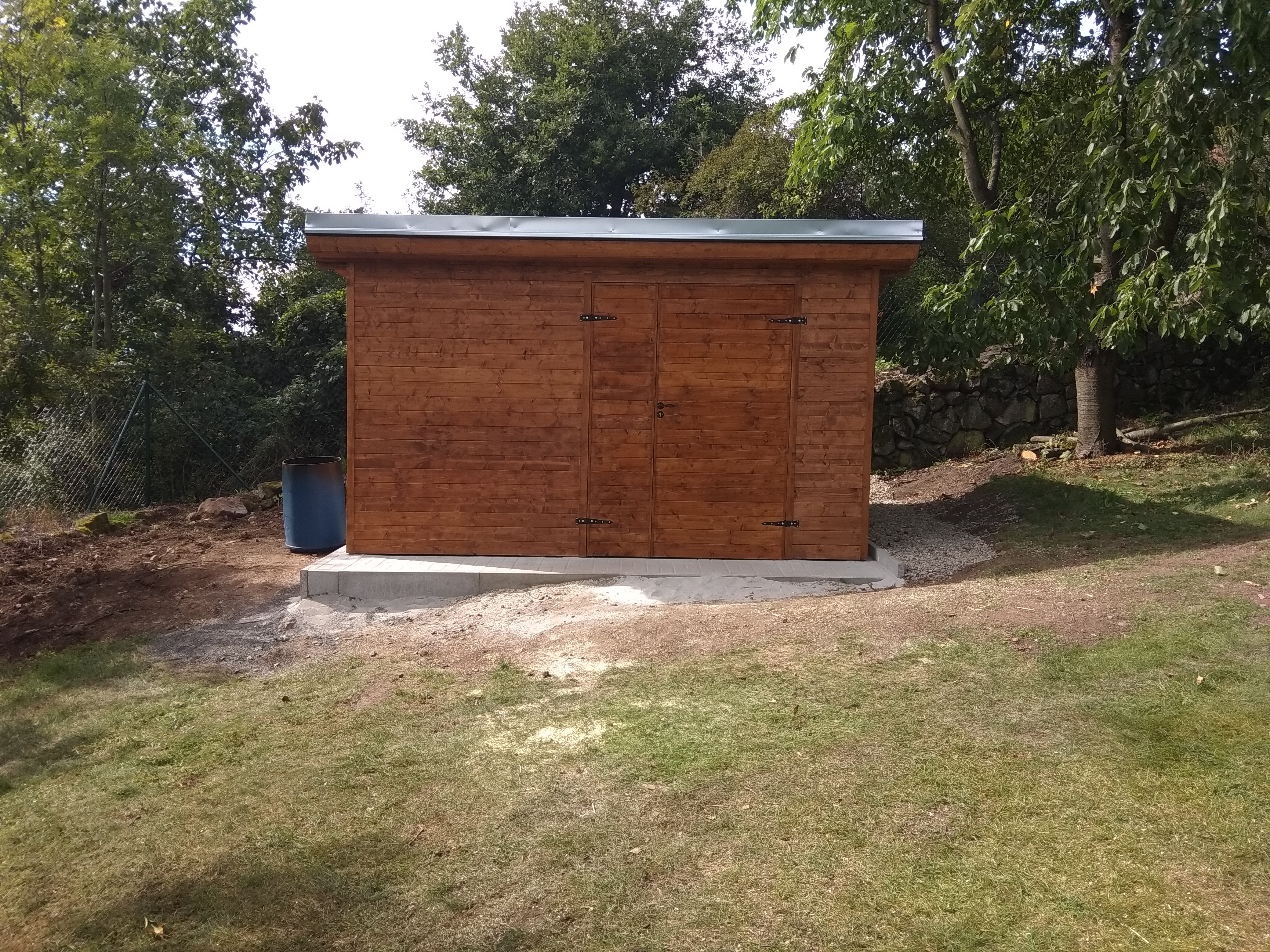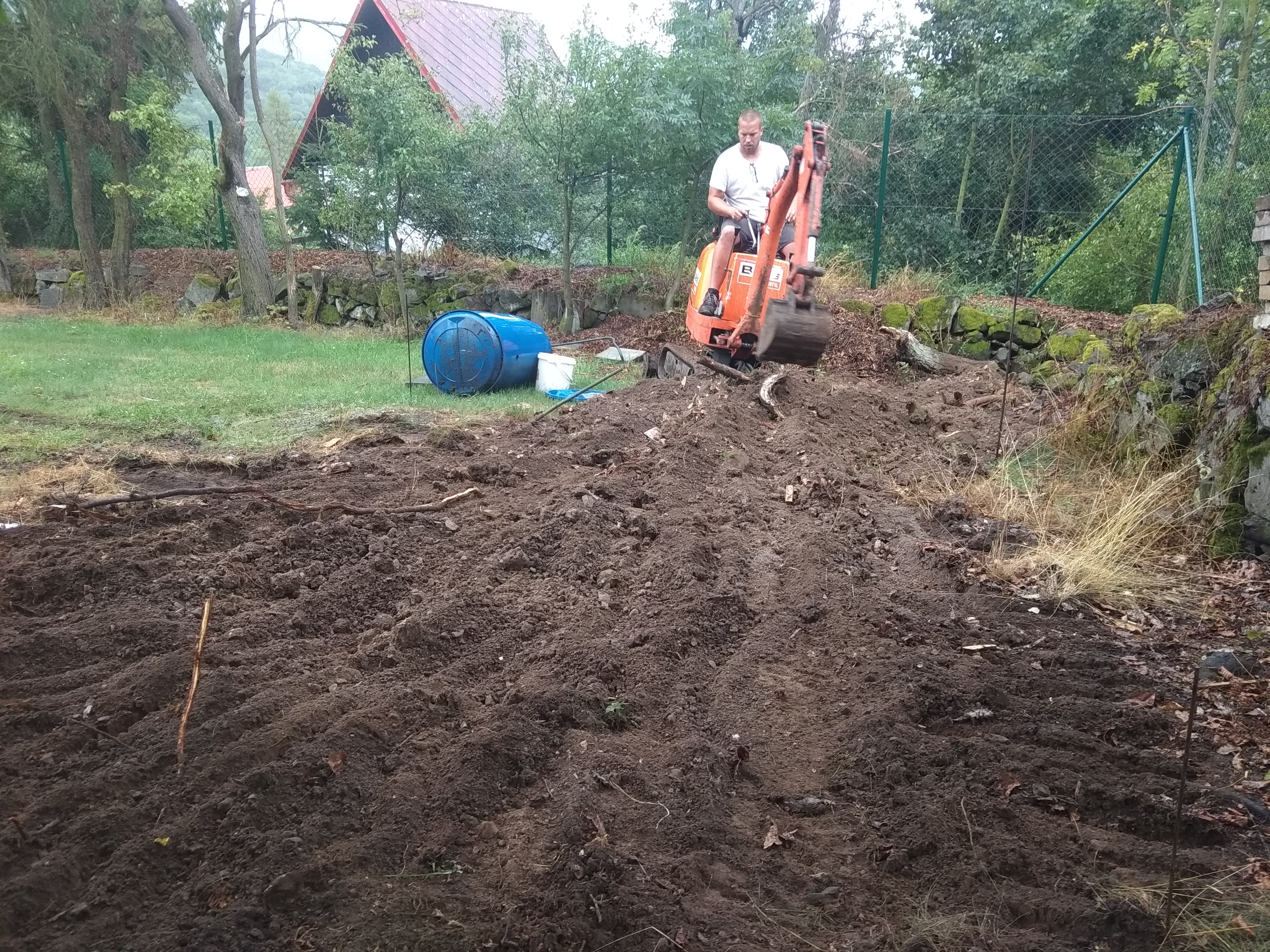 Byli jsme požádáni o návrh a realizaci zahradního domku na rodinné zahradě venkovského charakteru. První z předpokladů, bylo zbourání stávající chaty, vybagrování podkladu, postavení základové desky a pustění se do samotné stavby zahradního domku.
