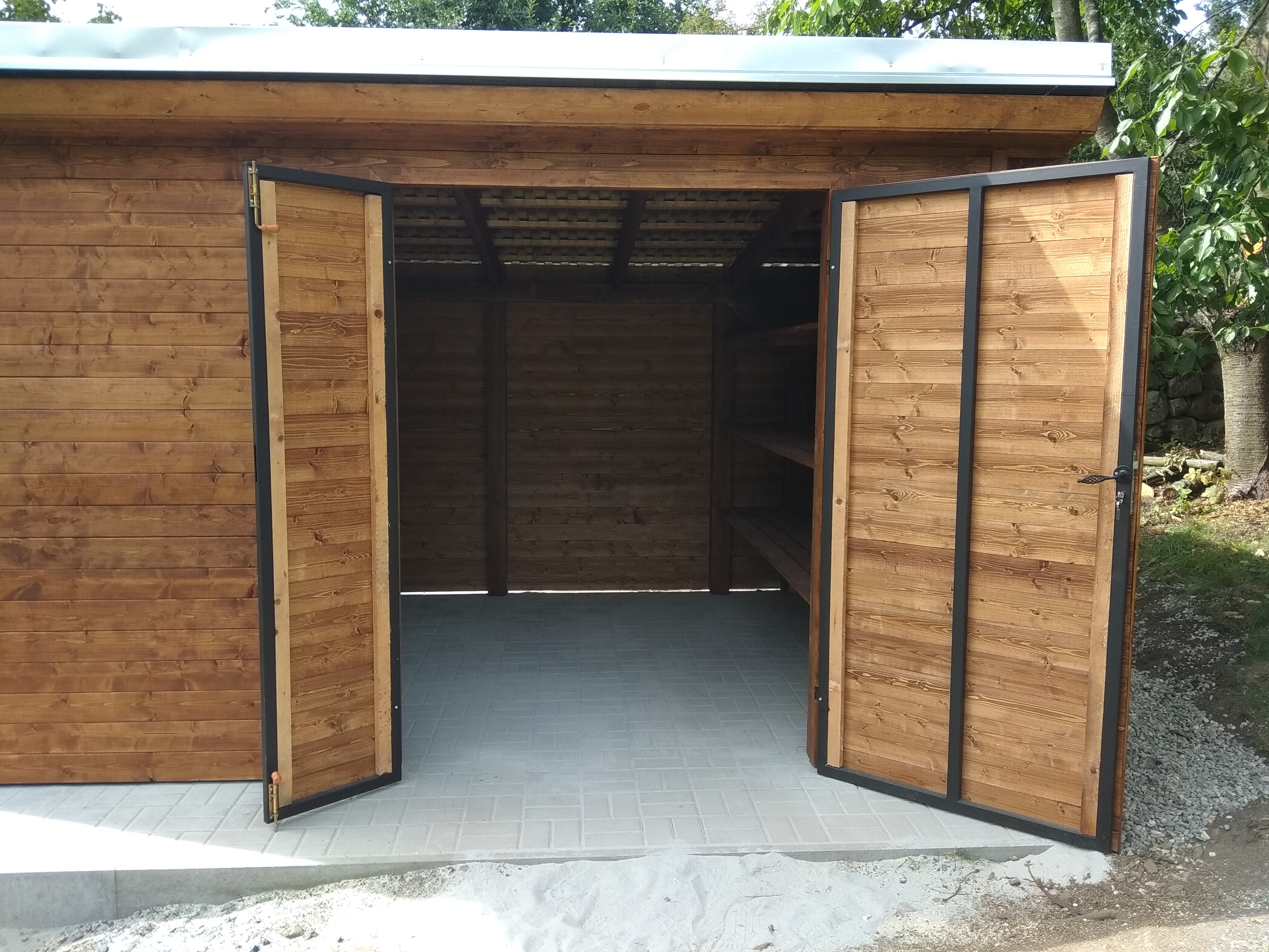 Zahradní domek měl být především funkční pro uskladnění zahradního nábytku a nářadí, ale jedním z hlavních požadavků bylo to, aby dveřmi projel zahradní traktor. Museli jsme tedy udělat dveře s vystuženou konstrukcí aby nedocházelo ke kroucení a svírání dveří.